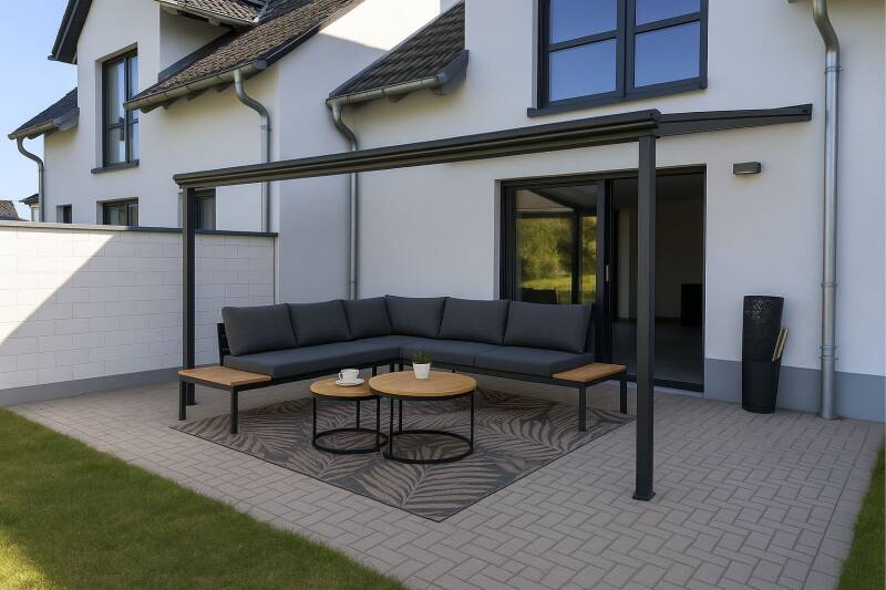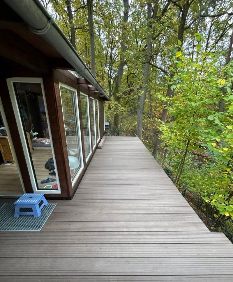 Holzkonstruktion mit Verglasung und aufgeständerter Terrasse
